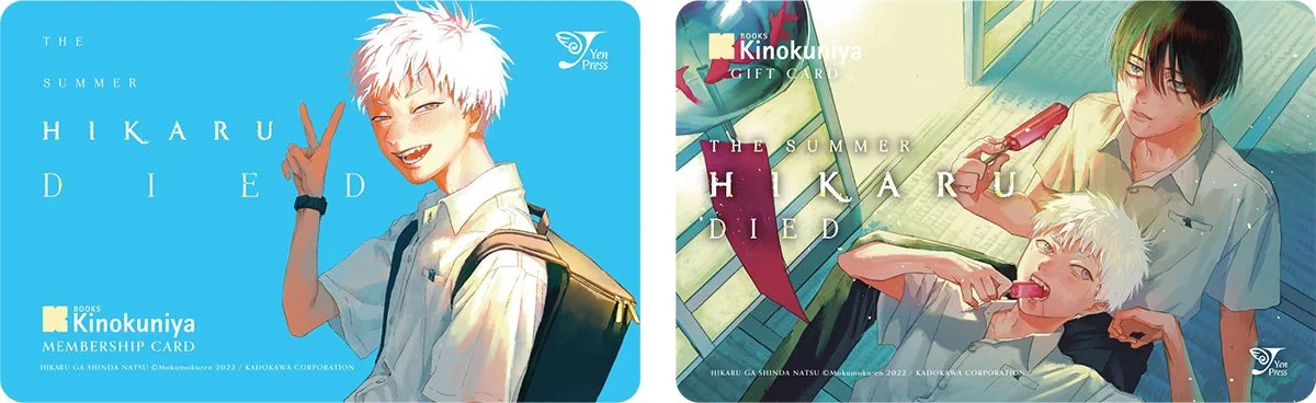 Special thanks to Yen Press; in addition to our newly released Kinokuniya Exclusive The Summer Hikaru Died, Vol. 1 in English, we have created The Summer Hikaru Died edition Kinokuniya membership and gift cards celebrating the anime release!