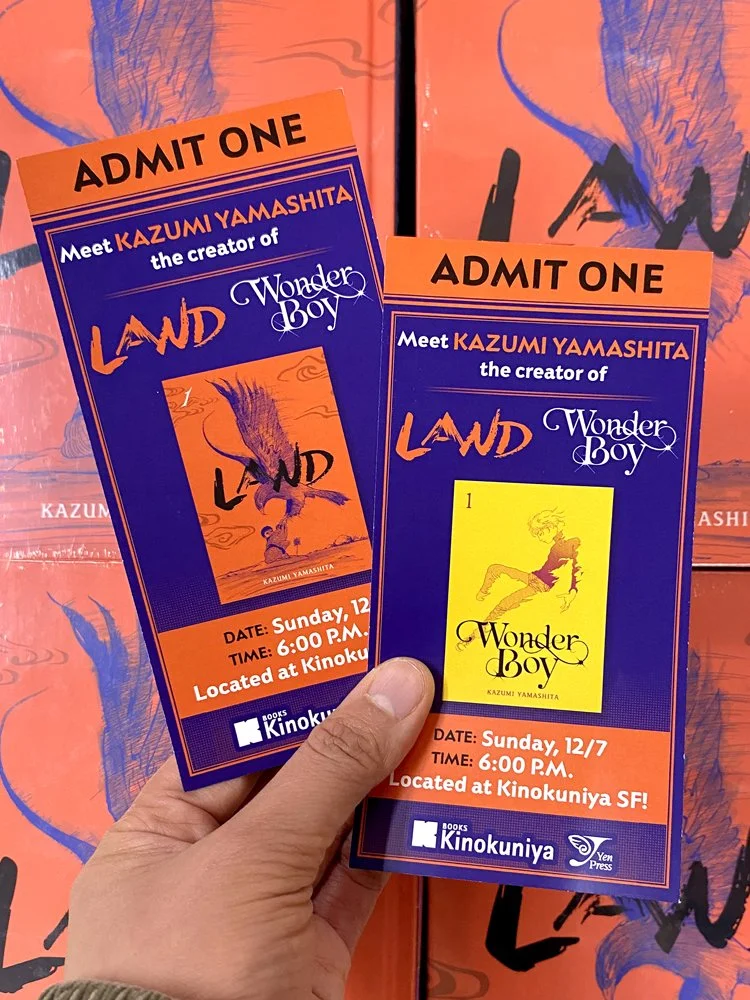 To receive a signing ticket, pre-purchase WONDER BOY* Vol. 1 in English or purchase LAND Vol. 1 in English prior to the event at Kinokuniya San Francisco. Please note that tickets are now available in a limited quantity.