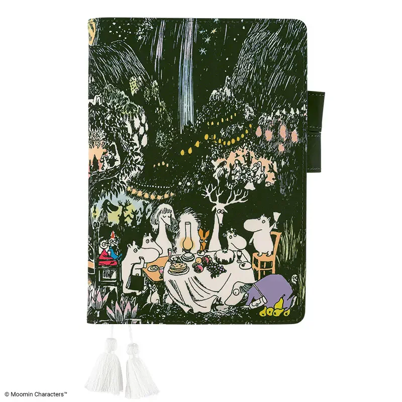 These Hobonichi Techo Weeks covers combine charming Moomin scenes with practical design. The Night of the Big Party cover uses lightweight polyester for flexibility, while the Written Memories version features durable navy leather with a subtle stamped finish. Both offer inner pockets for storage, and are paired with the functional Weeks planner—compact, slim, and ideal for daily planning, journaling, and note-taking on the go.