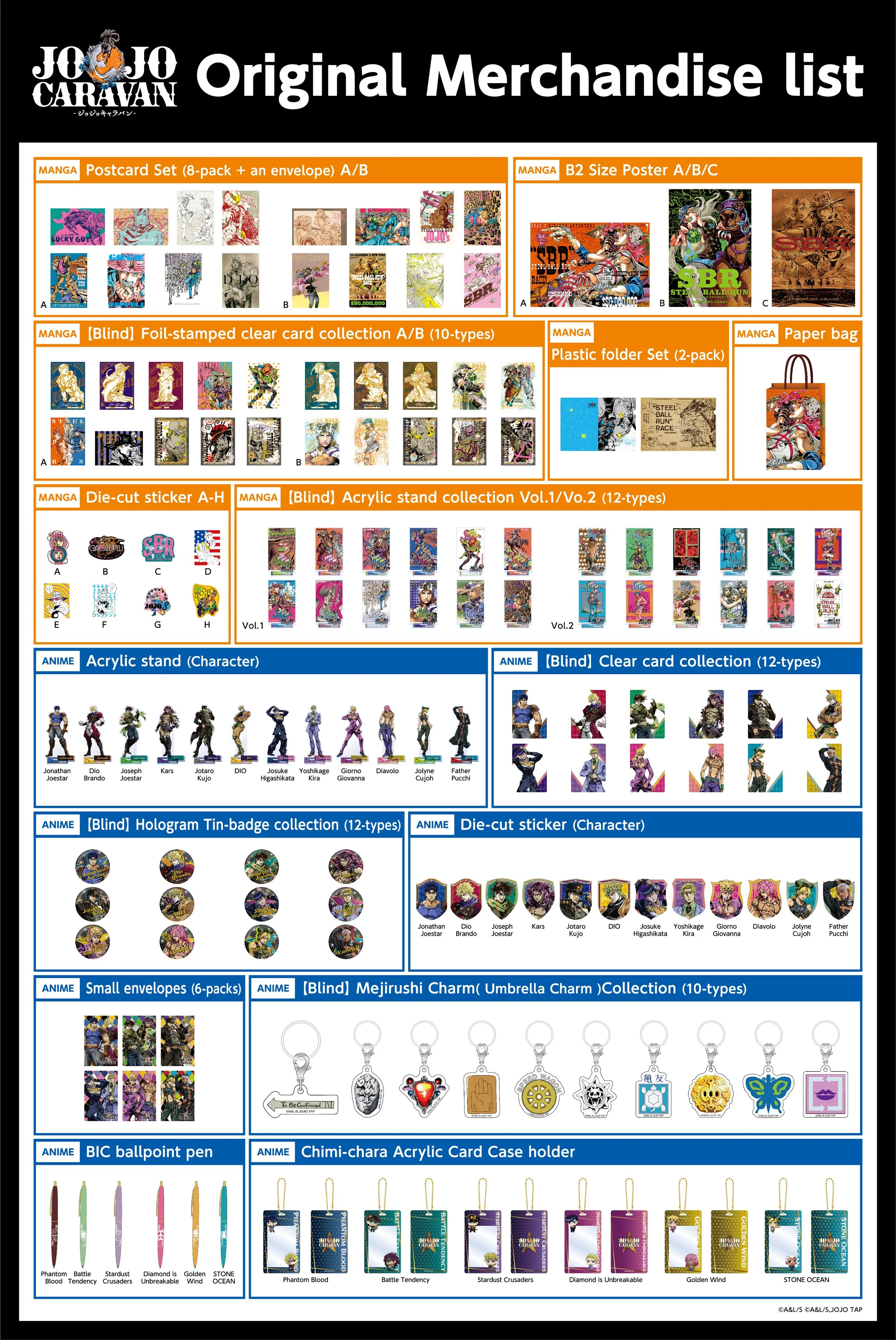 Don't miss your chance to get special JOJOCARAVAN merchandise featuring the artwork from manga and anime from JoJo’s Bizarre Adventure Series! Available from 2/6 ~ 3/29 at the following stores